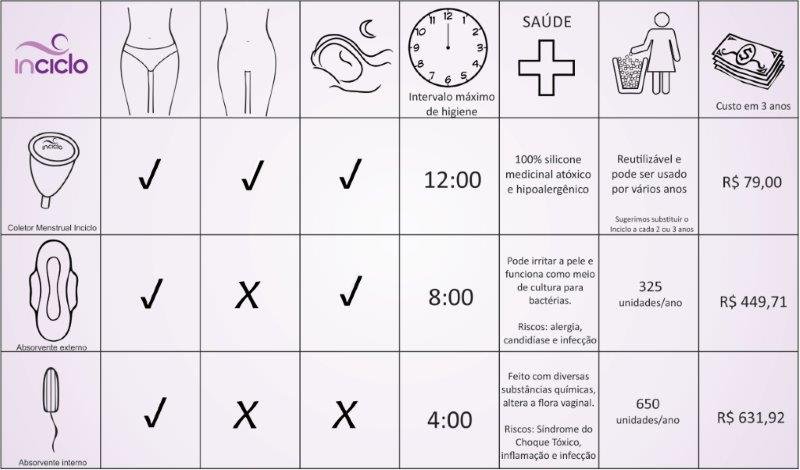 Inciclo é econômico e ecológico, já que você adquiri um, usa por vários anos e não precisa mais comprar absorventes descartáveis.